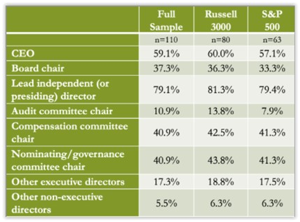- Companies—Lead independent directors and CEOs are the most commonly involved board members in companies' shareholder engagements.