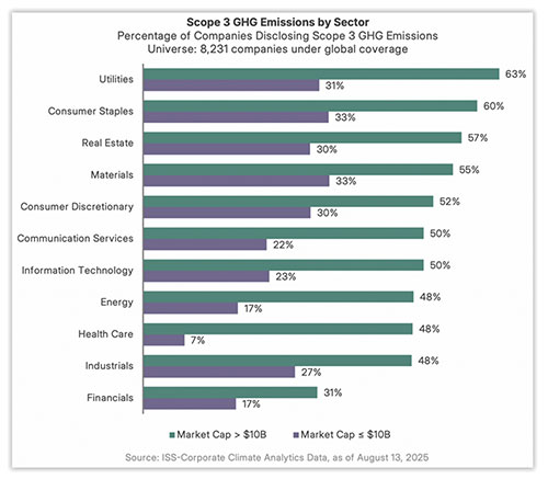 ISS reported on Scope 3 GHG emissions disclosure trends as of August 13, 2025.